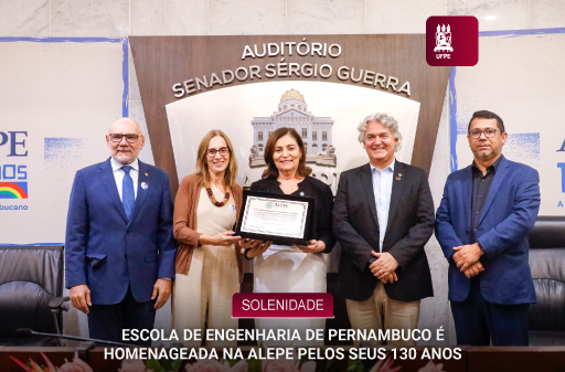 Os 130 anos da Escola de Engenharia de Pernambuco, atual Centro de Tecnologia e Geociências (CTG) da Universidade Federal de Pernambuco (UFPE), foram homenageados em Reunião Solene, realizada na noite dessa quarta-feira (dia 4), na Assembleia Legislativa do Estado de Pernambuco (Alepe). A solenidade contou com a presença do reitor Alfredo Gomes, do vice-reitor Moacyr Araújo, da diretora do CTG, Yêda Almeida, e do presidente do Conselho Regional de Engenharia e Agronomia de Pernambuco de Pernambuco (Crea-PE), Adriano Lucena. A homenagem, que pode ser assistida pelo canal da Alepe no YouTube, foi resultado de solicitação feita pela deputada Simone Santana.