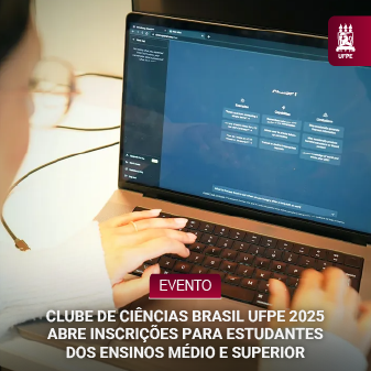 O Clube de Ciências Brasil UFPE será realizado de 28 de julho a 1º de agosto, no Campus Recife da Universidade Federal de Pernambuco. O evento faz parte de um programa voltado para estudantes do Ensino Médio e dos dois primeiros anos do Ensino Superior, de instituições públicas ou privadas, que tenham interesse em vivenciar a ciência dentro do ambiente universitário. As inscrições são gratuitas e podem ser realizadas por meio desta página.