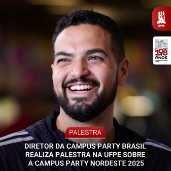 O Diretor da Campus Party Brasil, Ricardo Queiroz, realiza palestra com o tema “Campus na Estrada - CPNordeste 2”, focando na apresentação da Campus Party Nordeste 2025, evento com atividades voltadas à tecnologia, inovação e criatividade para todas as idades. O encontro será nesta quinta-feira (21), às 14h, no anfiteatro do Centro de Informática (CIn) da UFPE. A palestra é aberta ao público.