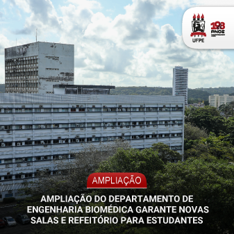 As instalações do Departamento de Engenharia Biomédica (DEBM) da Universidade Federal de Pernambuco (UFPE) foram ampliadas com mais três salas de aula para os cursos de graduação e pós-graduação, cinco gabinetes coletivos para os docentes e pesquisadores visitantes e de pós-doutorado, uma recepção, uma sala de reuniões e videoconferência e um refeitório para os estudantes. Na próxima sexta-feira, às 11 h, será realizado evento, com a presença do reitor Alfredo Gomes, para marcar a inauguração da nova área no 2º andar da Torre Administrativa que faz parte do Centro de Tecnologia e Geociências (CTG).