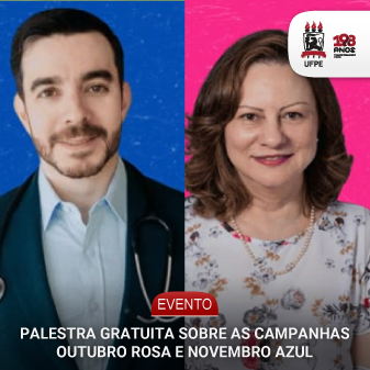 O projeto de extensão “Qualidade de Vida: A conquista através da inteligência afetiva”, que integra o Programa de Harmonização, Bem-estar e Saúde Mental da Universidade Federal de Pernambuco (UFPE), promove palestra gratuita sobre as campanhas Outubro Rosa e Novembro Azul. O encontro ocorre no dia 11 de novembro, às 10h, no Anfiteatro Professor José Francisco Ribeiro Filho, do Centro de Ciências Sociais Aplicadas (CCSA), Campus Recife. Os interessados no tema podem se inscrever por meio do link. Será conferido certificado de participação.