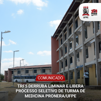 Nesta terça-feira (7), o desembargador Fernando Braga Damasceno, da Primeira Turma do Tribunal Regional Federal da 5ª Região, concedeu liminar recursal ao Agravo de Instrumento impetrado pela UFPE, restabelecendo-se a validade e eficácia da Resolução 01/2025 do Conselho Universitário da UFPE e do Edital Prograd nº 31/2025, que cria uma turma especial do curso de Medicina, com 80 vagas, no Centro Acadêmico do Agreste (CAA) da UFPE, em Caruaru, destinada a público-alvo do Programa Nacional de Educação para Áreas de Reforma Agrária (Pronera)/Incra. Com esta decisão, fica suspensa a liminar concedida pela Justiça Federal na ação popular movida pelo vereador Tadeu Calheiros.