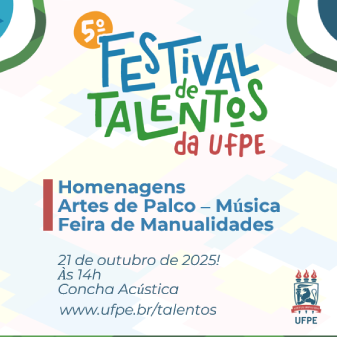 O V Festival de Talentos é uma realização da Pró-Reitoria de Gestão de Pessoas e Qualidade de Vida (Progepe), por meio da Diretoria de Qualidade de Vida (DQV), em parceria com a Superintendência de Cultura (Supercult). Em sua quinta edição, o evento celebra o talento e a criatividade da comunidade universitária, reunindo diversas expressões artísticas e culturais, com programações também nos campi de Caruaru (CAA) e Vitória de Santo Antão (CAV).